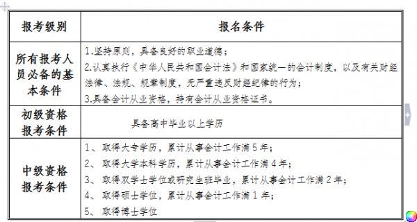 附件一:全國(guó)會(huì)計(jì)專業(yè)技術(shù)資格考試報(bào)名條件一覽表