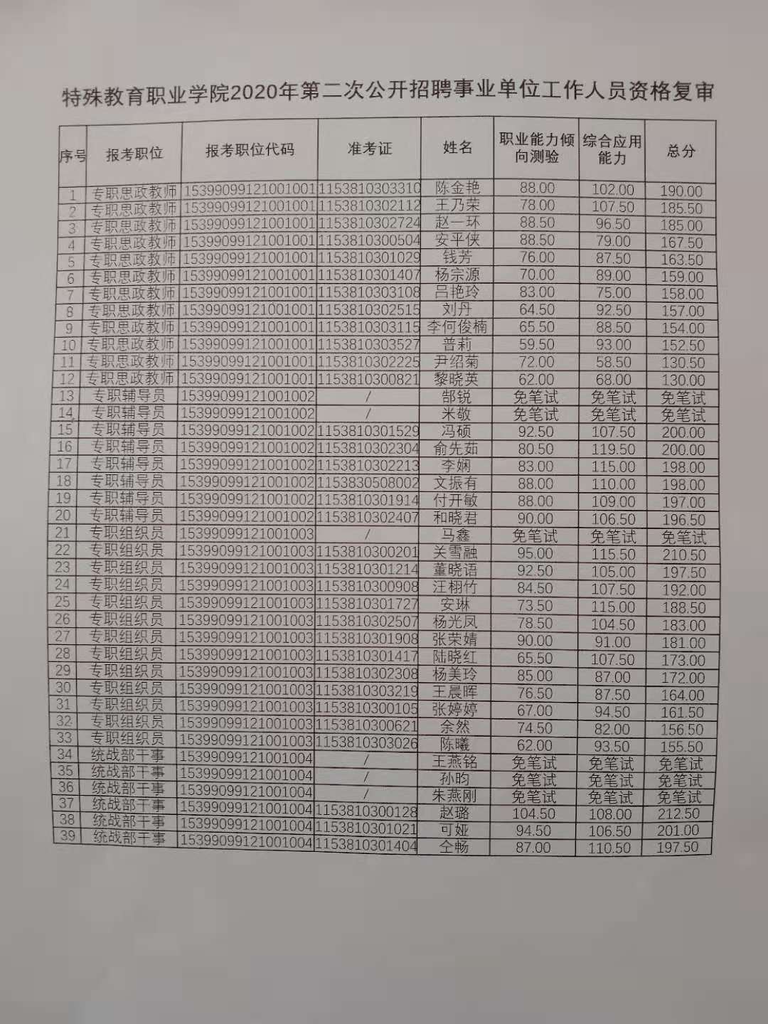 云南特殊教育職業(yè)學(xué)院2020年第二次公開招聘事業(yè)單位工作人員資格復(fù)審名單