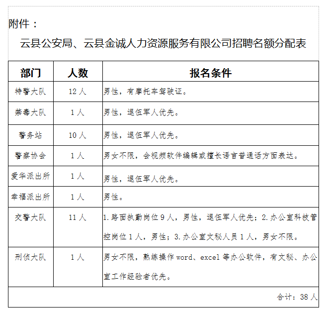附件:《云縣公安局、云縣金誠人力資源服務(wù)有限公司招聘名額分配表》