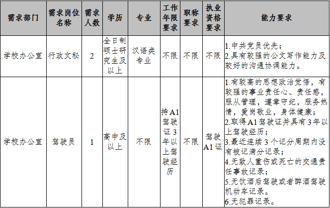 關(guān)于學(xué)校辦公室行政崗位及駕駛員崗位招聘公告