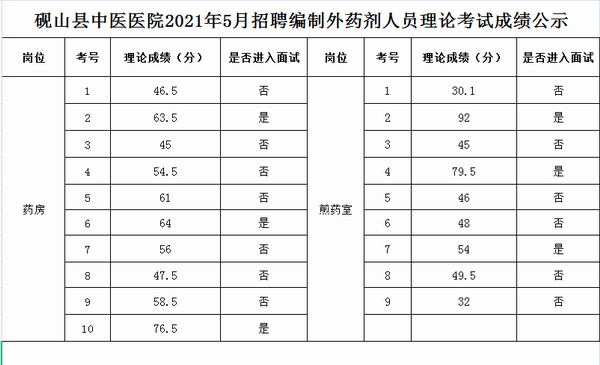 硯山縣中醫(yī)醫(yī)院2021年5月招聘編制外藥劑人員理論考試成績(jī)公示