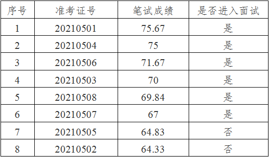 按照選調(diào)崗位筆試成績從高到低的順序,按1:3的比例確定面試人員。筆試成績及進(jìn)入面試人員名單如下: