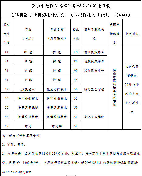保山中醫(yī)藥高等??茖W(xué)校2021年招生簡(jiǎn)章