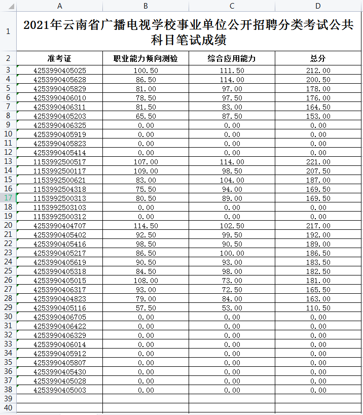 2021年云南省廣播電視學(xué)校事業(yè)單位公開招聘分類考試公共科目筆試成績