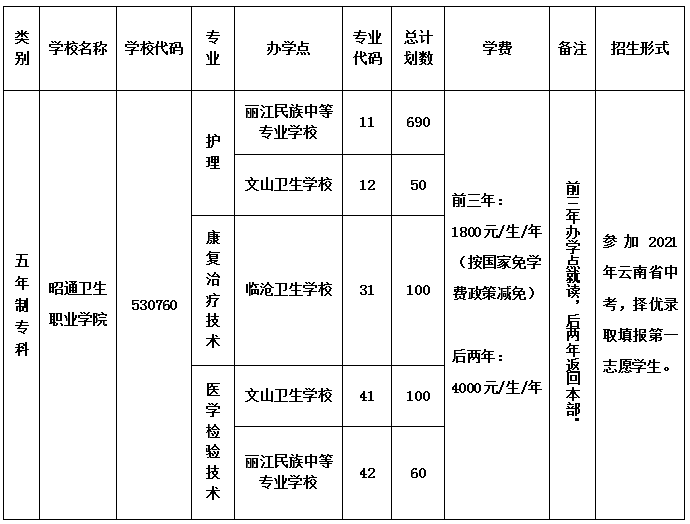 2021年昭通衛(wèi)生職業(yè)學院招生簡章(三年制、五年制大專、三年制中專)