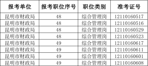 報考昆明市財政局綜合管理崗位,經資格復審合格確認參加面試的人員(見附件)。