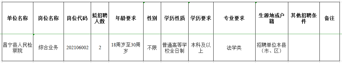 昌寧縣人民檢察院2021年招聘聘用制書記員崗位設(shè)置表