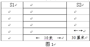場地器材:10米長的直線跑道若干,在跑道的兩端線(S1和S2)外30厘米處各劃一條線(圖1)。木塊(5厘米×10厘米)每道3塊,其中2塊放在S2線外的橫線上,一塊放在S1線外的橫線上。秒表若干塊,使用前應(yīng)進(jìn)行校正。