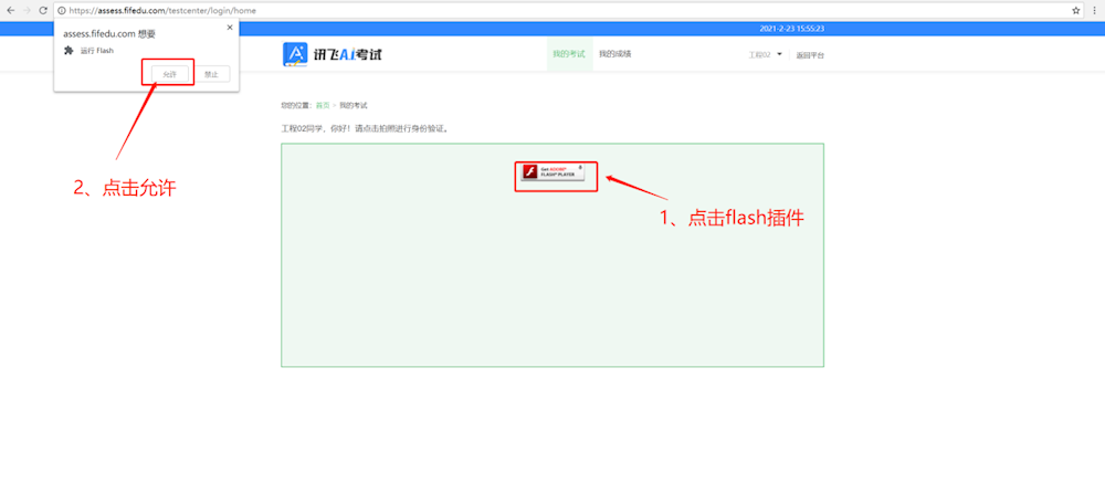 如遇瀏覽器提示Flash插件權(quán)限,此階段需要設(shè)置允許Flash插件運(yùn)行。