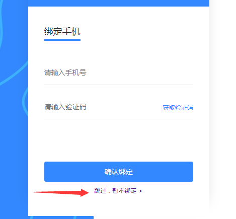 2.綁定手機號選擇“跳過,暫不綁定”。