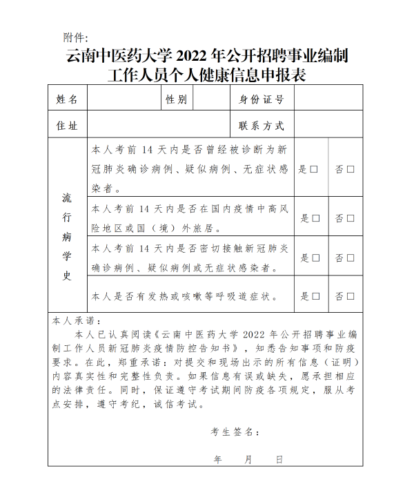 附件:云南中醫(yī)藥大學(xué)2022年公開招聘事業(yè)編制工作人員個(gè)人健康信息申報(bào)表.docx