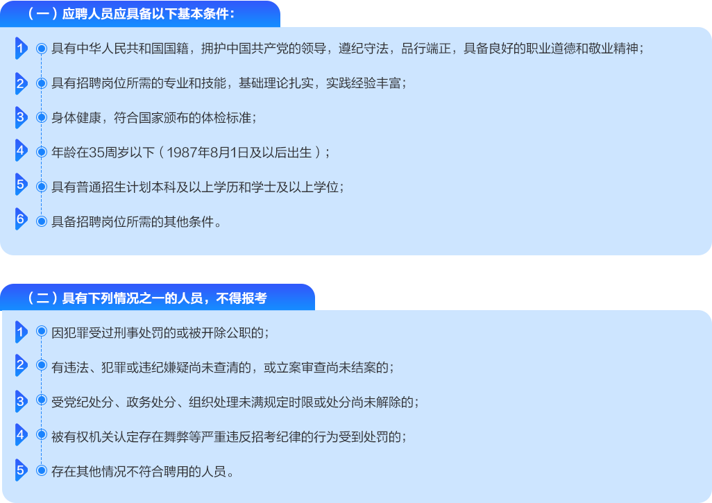 | 注:1.年齡要求在35周歲以下的須于1987年8月1日及以后出生。 2.專業(yè)目錄詳見《普通高等學(xué)校本科專業(yè)目錄(2020年版)》。 3.福利待遇:正式簽訂勞動合同的聘用人員聘用期間待遇參照事業(yè)單位同等次崗位標(biāo)準(zhǔn)執(zhí)行;繳納五險一金,享受帶薪年假。 |