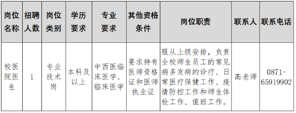 2.福利:聘用人員學(xué)校按國家和云南省相關(guān)政策購買“五險(xiǎn)一金”。