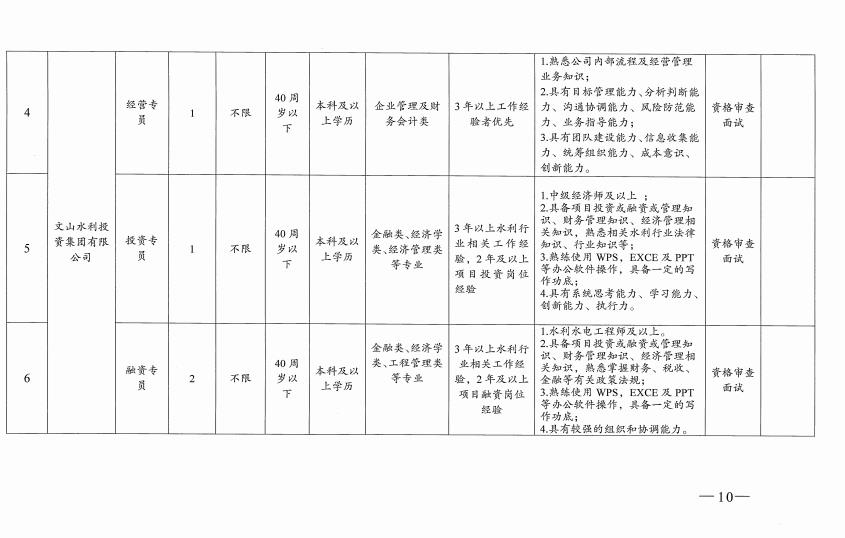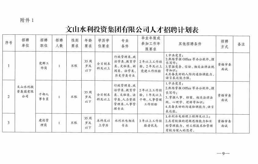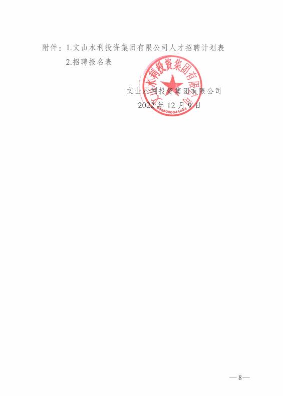 文山水利投資集團(tuán)有限公司2022年工作人員招聘公告