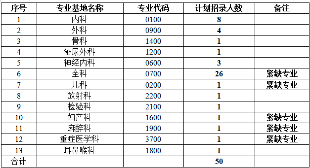 我院2023年度住院醫(yī)師規(guī)范化培訓(xùn)招收專業(yè)共13個(gè),招收計(jì)劃約為50人。(詳見下表)