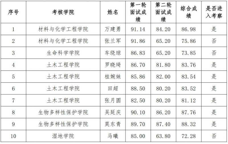 一、進(jìn)入考察人員名單