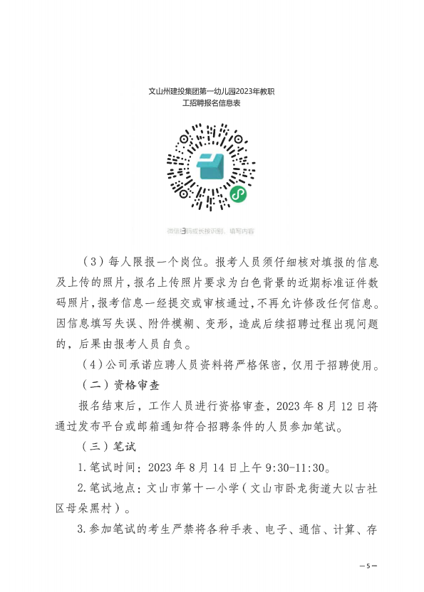 文山建投集團(tuán)第一幼兒園2023年教職工招聘公告
