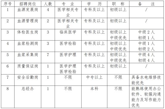 中國(guó)生物墨江上生單采血漿站關(guān)于公開(kāi)招聘專業(yè)技術(shù)人員的招聘公告