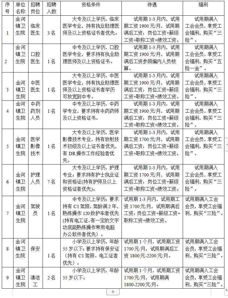 金平縣金河鎮(zhèn)衛(wèi)生院招聘編外工作人員公告