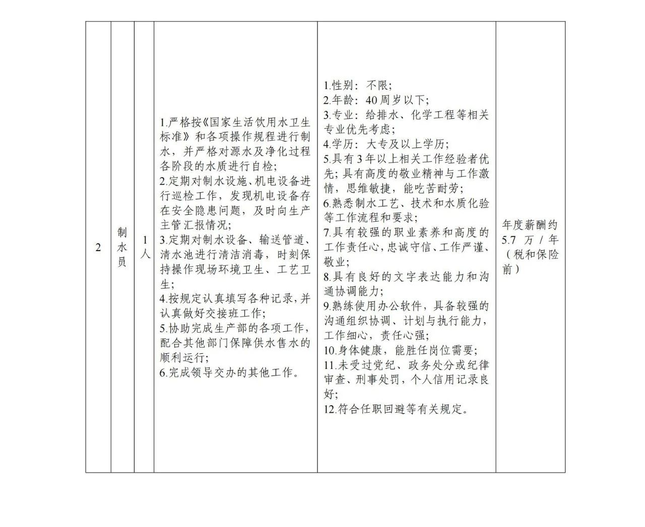 (二)制水員1名,用工性質(zhì)為勞務(wù)派遣,購買五險(xiǎn)。