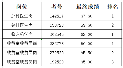 根據(jù)《丘北縣雙龍營鎮(zhèn)中心衛(wèi)生院非在編職工招聘公告》有關規(guī)定,經筆試、面試程序,現(xiàn)將丘北縣雙龍營鎮(zhèn)中心衛(wèi)生院2024年2月公開招聘非在編崗位人員綜合成績予以公示。