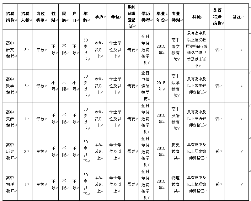 蒙自一中招聘信息表