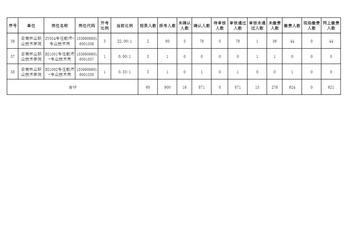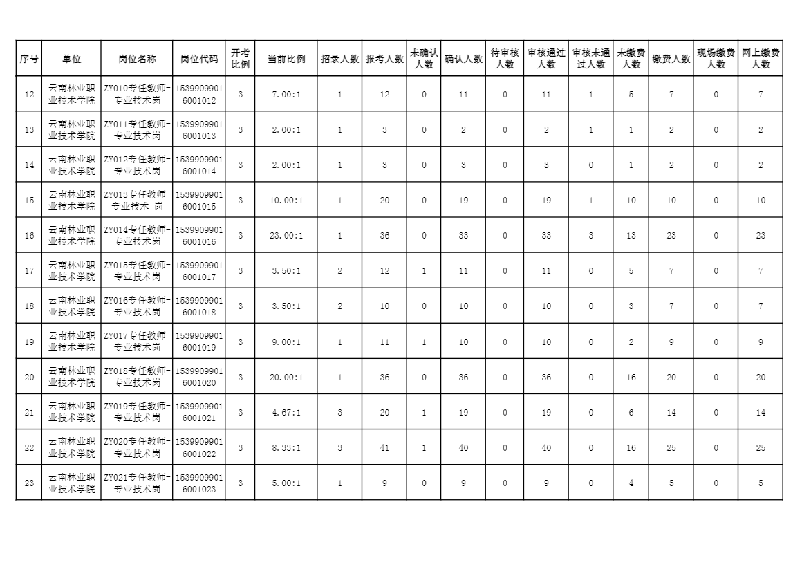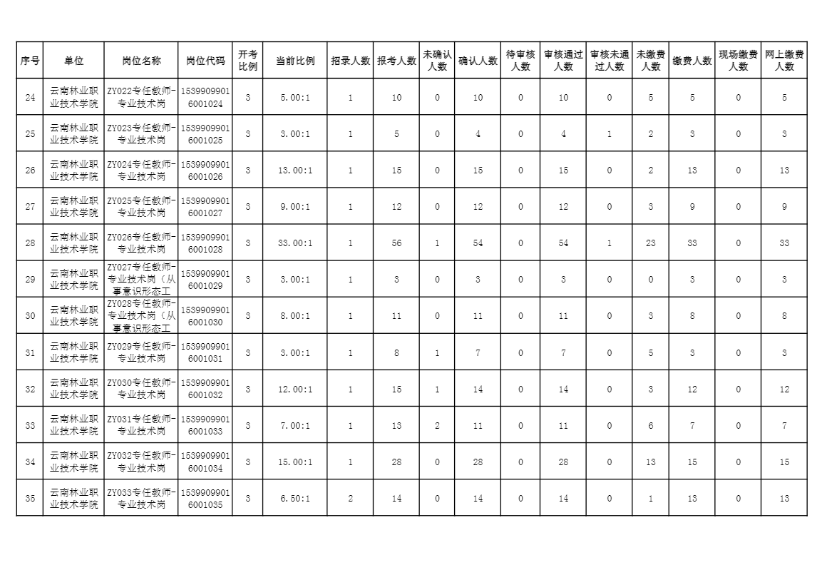 云南林業(yè)職業(yè)技術學院2024年公開招聘人員系統(tǒng)報名人數(shù)公布