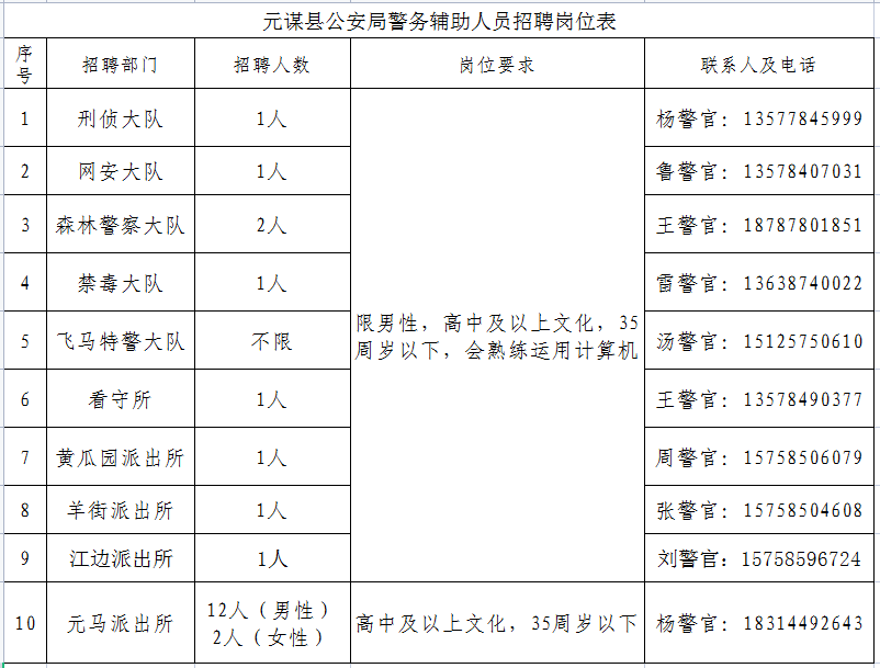 因工作需要,元謀縣公安局面向社會公開招聘警務(wù)輔助人員,現(xiàn)將有關(guān)事項(xiàng)公告如下: