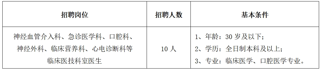 此次招聘會(huì)將同時(shí)進(jìn)行我院編外醫(yī)生的自主招聘及簽約,崗位及基本條件如下: