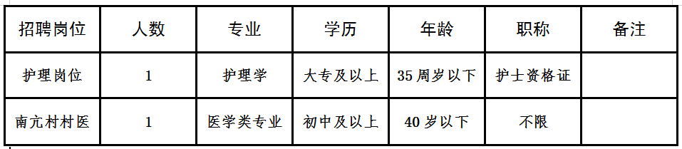 因人員變動(dòng),根據(jù)工作需要,本著公開(kāi)、公平、公正的原則,擬面向社會(huì)公開(kāi)招聘1名編外人員、1名村醫(yī)。