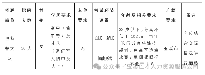 根據(jù)工作需要,經(jīng)研究決定,面向社會公開招聘玉溪市公安局紅塔分局勤務輔警人員30人。現(xiàn)將有關(guān)事項公布如下: