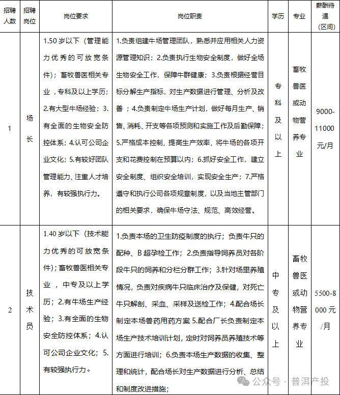 云??缔r(nóng)牧科技(普洱)有限公司2024年招聘公告