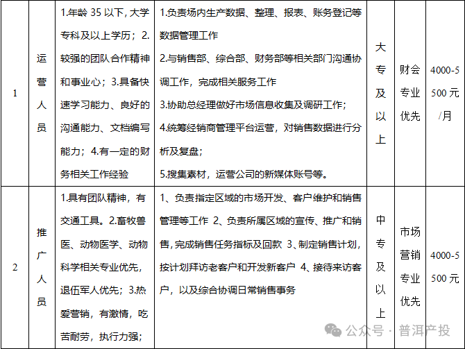 招聘公告在普洱市產(chǎn)投公眾號平臺發(fā)布,發(fā)布時間5個工作日。