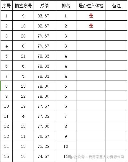 根據(jù)《玉溪市財(cái)政局公開招聘勞務(wù)派遣人員公告》要求,經(jīng)報(bào)名、資格審核,于2024年4月22日下午進(jìn)行面試,現(xiàn)將面試成績(jī)及進(jìn)入體檢人員予以公布: