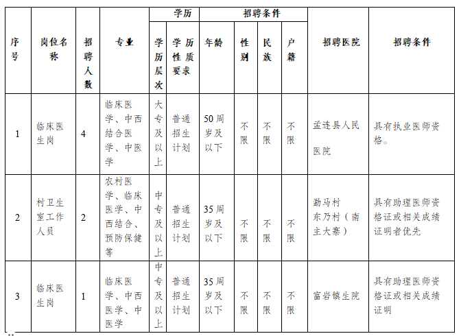 孟連縣緊密型醫(yī)共體總院微信公眾號(hào)公開發(fā)布招聘公告