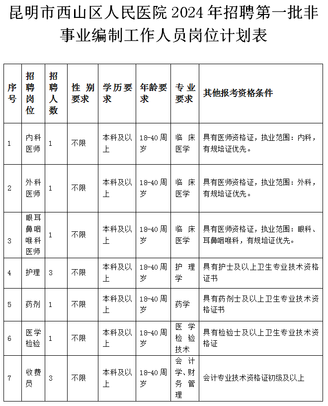 關(guān)于昆明市西山人民醫(yī)院公開招聘2024年第一批非事業(yè)編制工作人員的公告