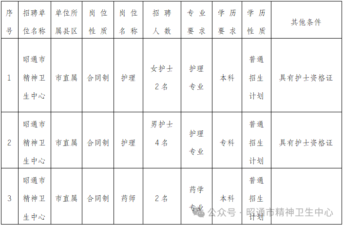 昭通市精神衛(wèi)生中心2024年第二次公開(kāi)招聘合同制人員通告