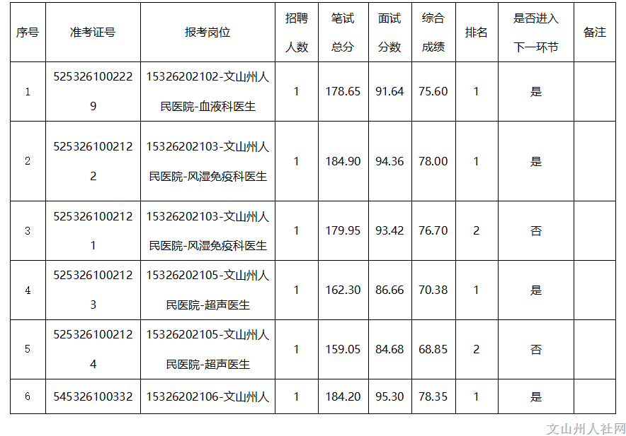 文山州人民醫(yī)院公開(kāi)招聘工作人員面試和綜合成績(jī)公布