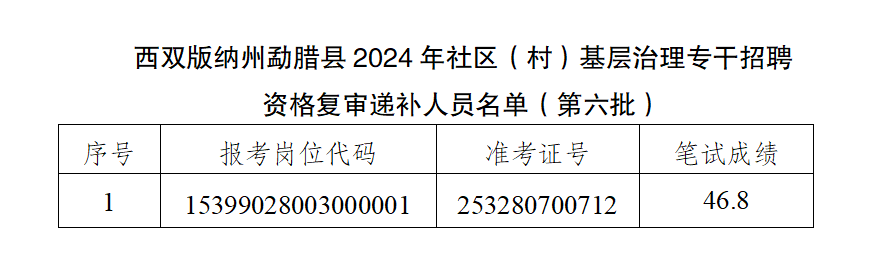 2024年西雙版納州勐臘縣社區(qū)(村)基層治理專干招聘資格復(fù)審遞補(bǔ)人員公示