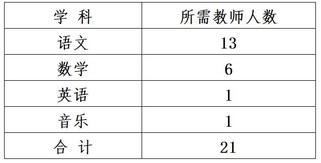 擬招聘合同制非在編教師21人,招聘教師崗位如下: