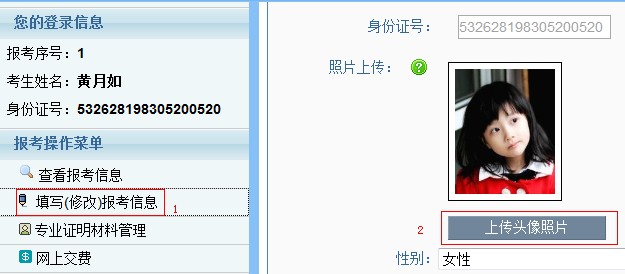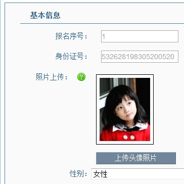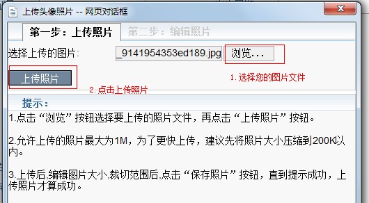 2、 為了上傳個(gè)人照片,點(diǎn)擊個(gè)人照片項(xiàng)目中“上傳頭像照片”按鈕,出現(xiàn)頁面如下: