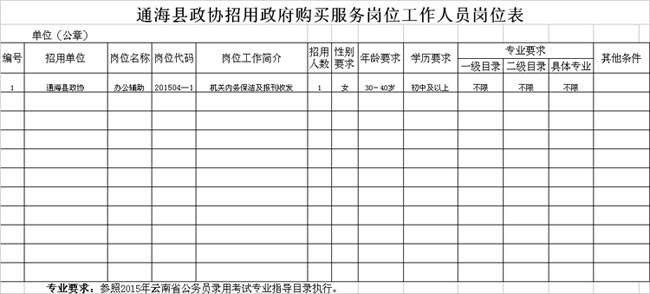 5、與崗位相匹配的具體條件(詳見(jiàn)《通??h政協(xié)招用政府購(gòu)買(mǎi)服務(wù)崗位工作人員崗位表》)