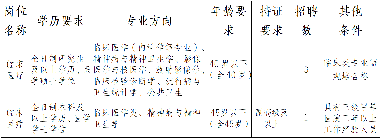 引進(jìn)崗位4名,為臨床醫(yī)療崗位。