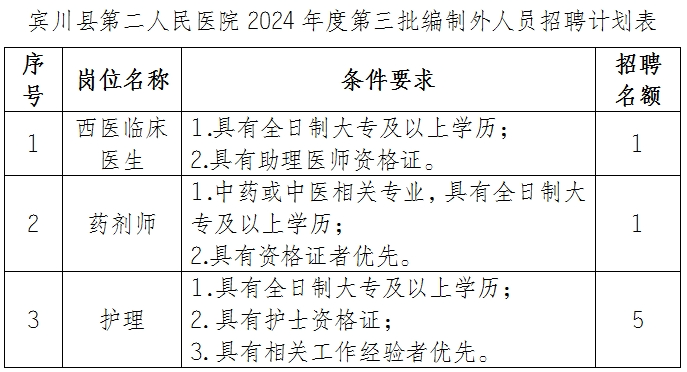 賓川縣第二人民醫(yī)院擬招聘編外人員數(shù)名