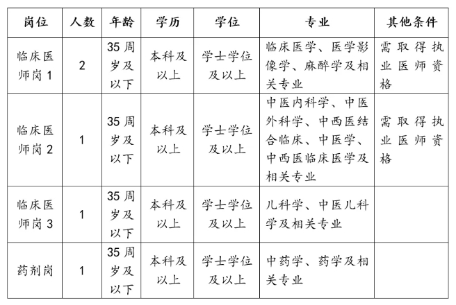 (二)崗位要求為2023年至2025年畢業(yè)的普通招生計(jì)劃畢業(yè)生,取得執(zhí)業(yè)醫(yī)師資格的人員可不受畢業(yè)年限限制。