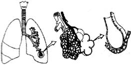 2.下圖為肺的內(nèi)部結(jié)構(gòu)示意圖,圖中所示肺泡外包圍著毛細(xì)血管,肺泡壁和毛細(xì)血管壁都很薄,由一層上皮細(xì)胞構(gòu)成,這有利 ( )