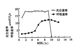 1.在充滿N2與CO2的密閉容器中,用水培法栽培幾株番茄,CO2充足。測(cè)得系統(tǒng)的呼吸速率和光合速率變化曲線如下圖,請(qǐng)回答問題。