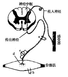 2.下圖是反射弧結(jié)構(gòu)模式圖。a、b分別是放置在傳出神經(jīng)和骨骼肌上的電極,用于刺激神經(jīng)和骨骼?。籧是放置在傳出神經(jīng)上的電位計(jì),用于記錄神經(jīng)興奮電位;d為神經(jīng)與肌細(xì)胞接頭部位,是一種突觸。