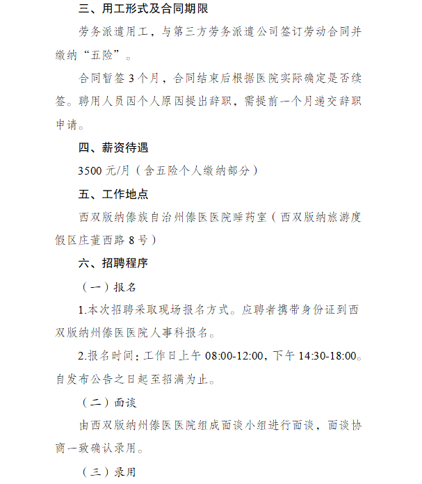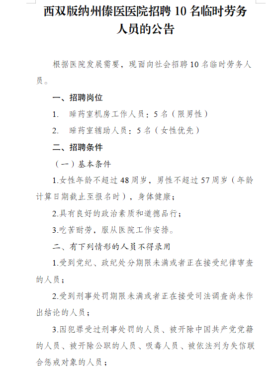 西雙版納州傣醫(yī)醫(yī)院招聘10名臨時(shí)勞務(wù)人員的公告