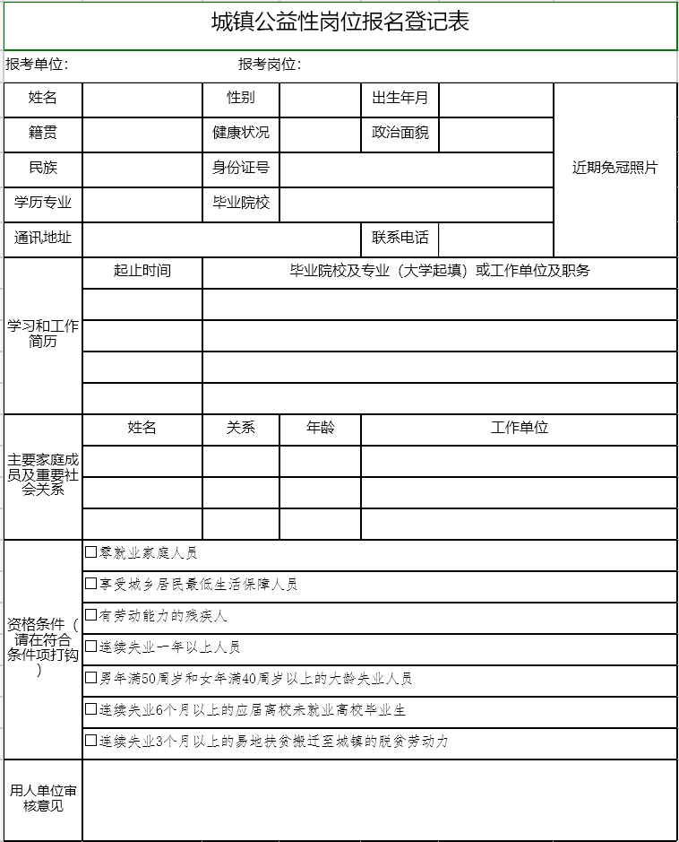 附件:城鎮(zhèn)公益性崗位報名登記表.xlsx